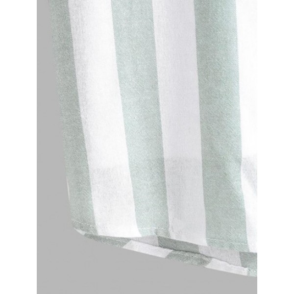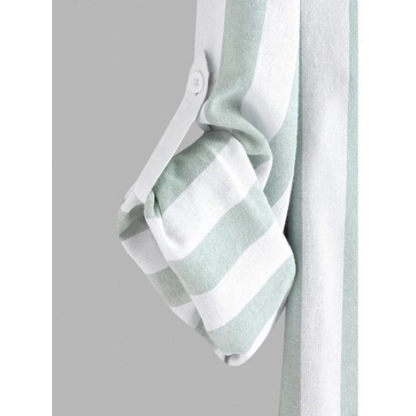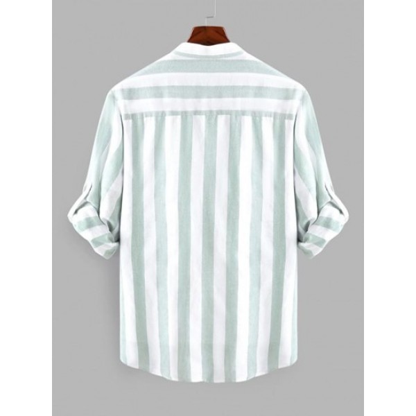 Slub Cotton Roll Up Long Sleeves Striped Shirt