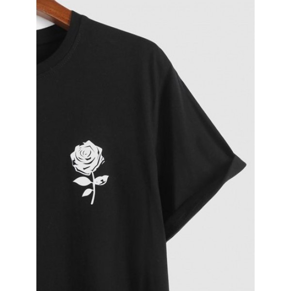 Short Sleeve Rose Print T-shirt